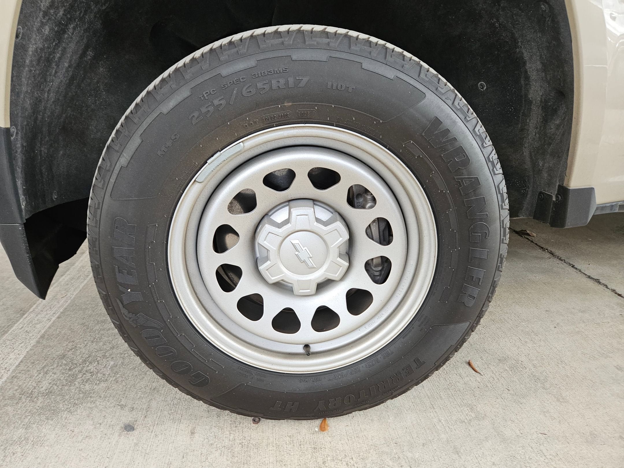 - Tires, 255/65R17 all-season, blackwall