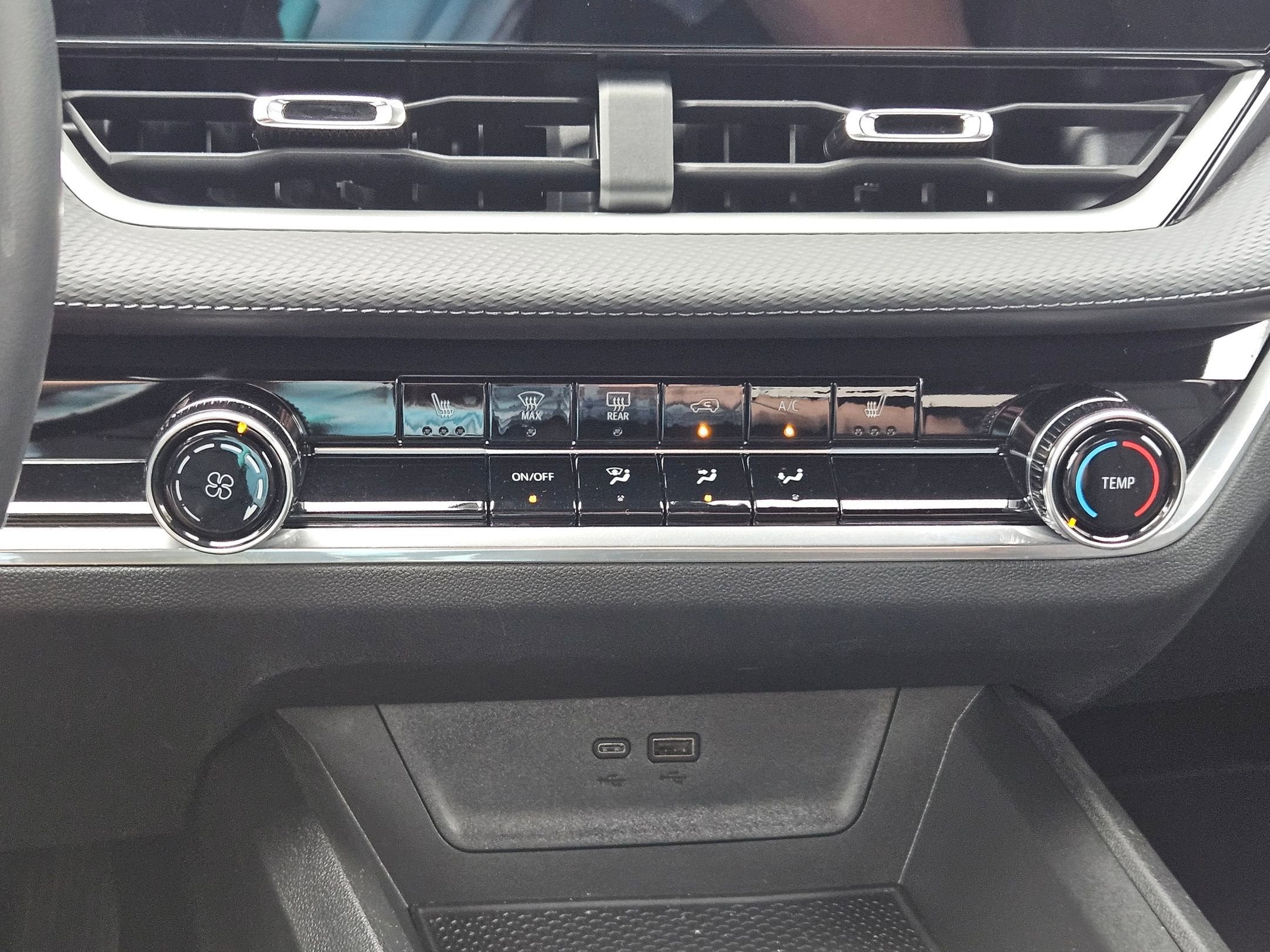 - USB Ports, 2, one type-A and one type-C data/charge, located in the front area of the center console